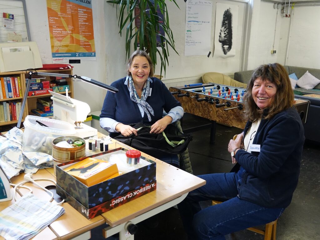 Beim vierten Termin des Reparaturcafés 2023 gab es wieder das gut etablierte Angebot von Kaffee/Kuchen/Säfte/Aufstrichbrote (Buffetbetreuung durch Julia und Elisabeth von Rumtrieb) und Profi-Elektrikern vom Team Strebinger (danke an Ulli, Paul und Manuel). Diese Möglichkeiten sind bei jedem Termin am Start! Als Vorbereitung auf den bevorstehenden Winter konnte die Schiausrüstung unter professioneller Anleitung in Schuss gebracht werden (Michi, Markus und Josef). Und mittlerweile schon das zweite Mal beim Reparaturcafé gab es Möglichkeit kleinere Reparaturen an Bekleidung und anderen Textilien vorzunehmen. Martina Göls stellt dieses Angebot mit großer Expertise, Leidenschaft und einem bezaubernden Lächeln zur Verfügung.