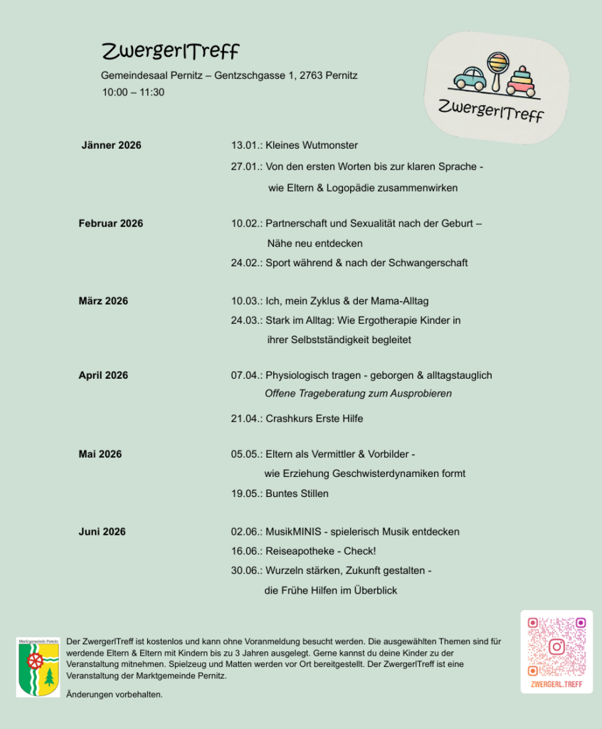 ZwergerlTreff Gemeindesaal Pernitz 10:00 – 11:30 Uhr